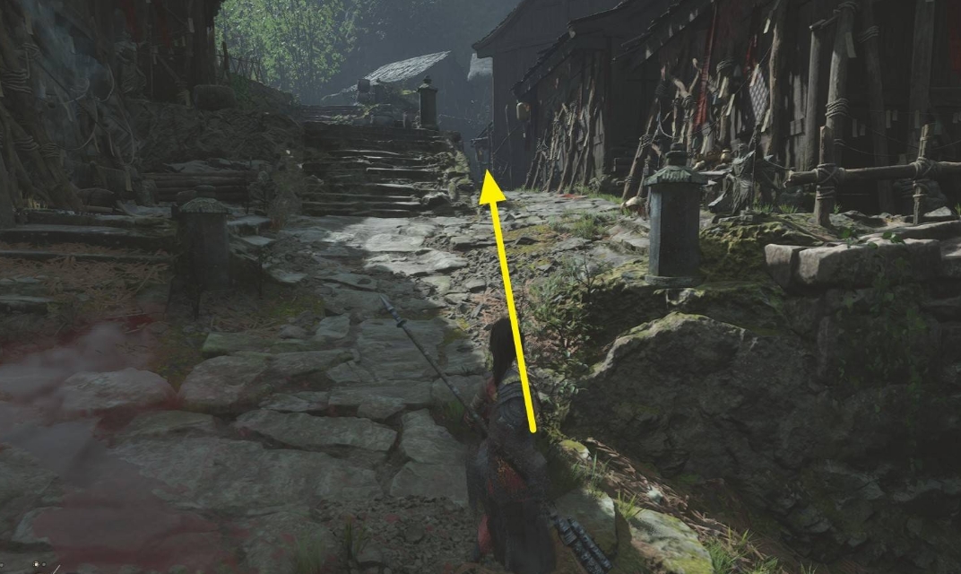 进门之后参考下图,往中间楼梯右侧的窄路走。