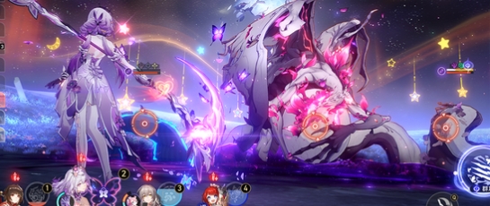 使用我方角色遐蝶对战「冥魂渡者,死龙残躯,玻吕刻斯」时完成制胜一-击