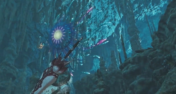 怪物猎人荒野中大望花水母是拥有独特外观的环境生物,一般出现在涌油谷区域13钟乳洞的营地下方的平台上方,可以在丰饶期的白昼找到它。