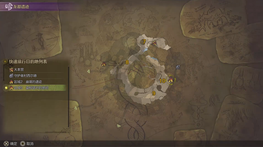 打开龙都遗迹地图,传送到区域9盘根错节的房间。