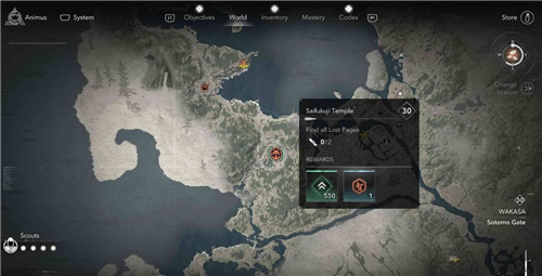 本篇为大家分享刺客信条影若狭地区西福寺的失落的卷页的收集位置,西福寺位于苏洞门,这里一共有2个失落的卷页。