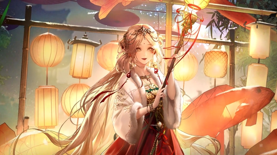 无期迷途中赫斯提亚皮肤属于节庆盛典系列,这台皮肤非常符合东洲主题,赫斯提亚身着国风小裙子,裙摆飘逸如火,小姑娘来到元宵灯会,为人们带来火母的庇佑。