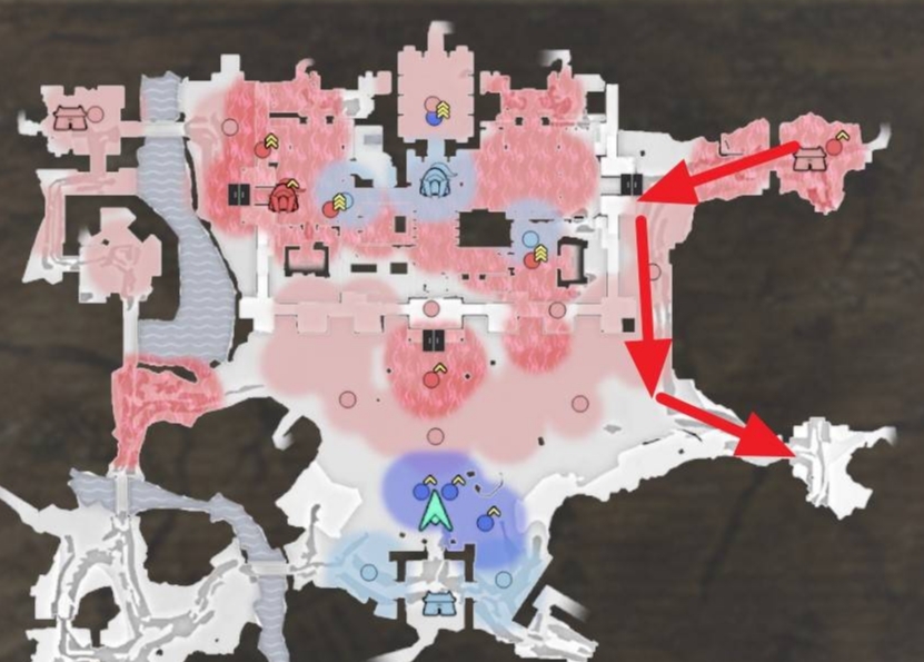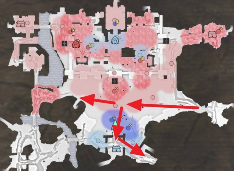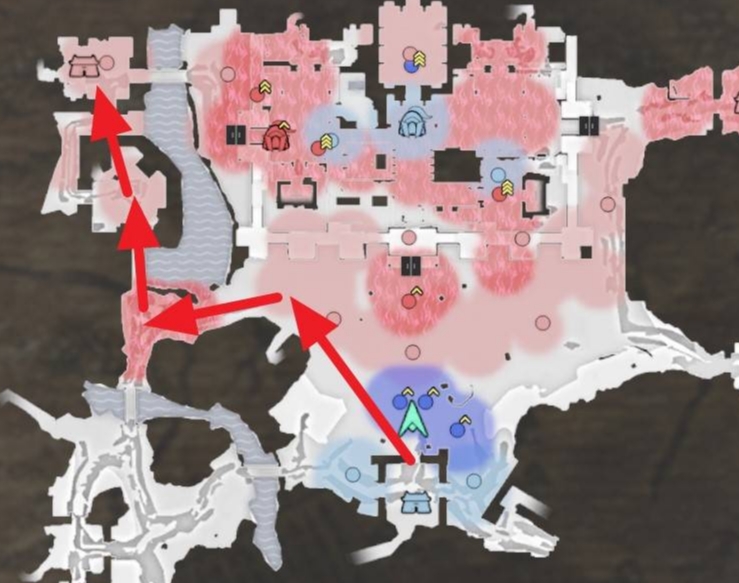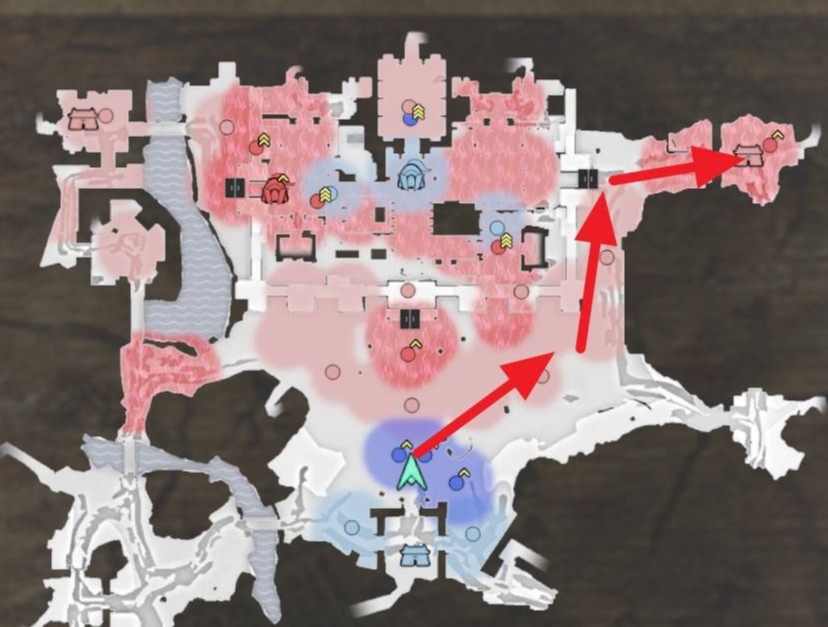 此战开启后我们直接沿着下图所示路线从左边移动到箭头停止处的据点内。