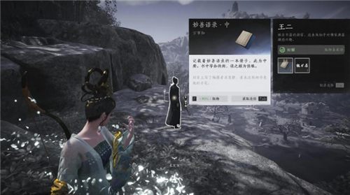 2.上册,菜单最右边邮箱下面的时辰调到午时,叩拜石碑,箱子自动打开,获得“妙善语录·上”