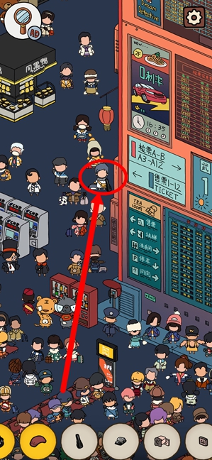 3、提着小提琴的男性站在地图中间巨大告示牌的左边,只要把屏幕往左边放大一点就能看到这个提着小提琴的男子。