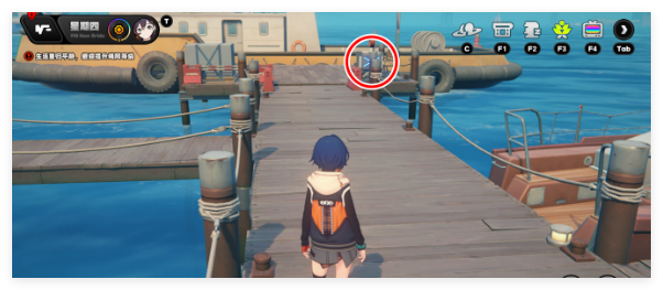 3,传送回港口步道,从左手边的楼梯下去