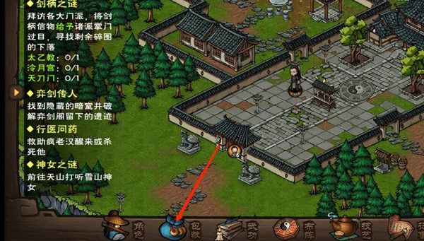 1、进入烟雨江湖,点击下方的包袱。