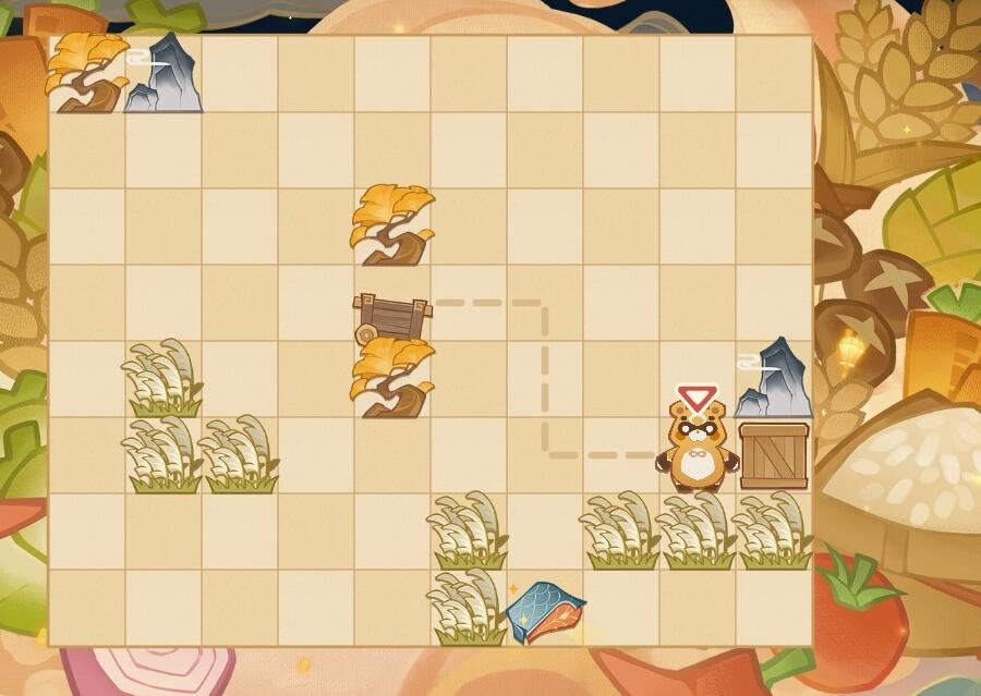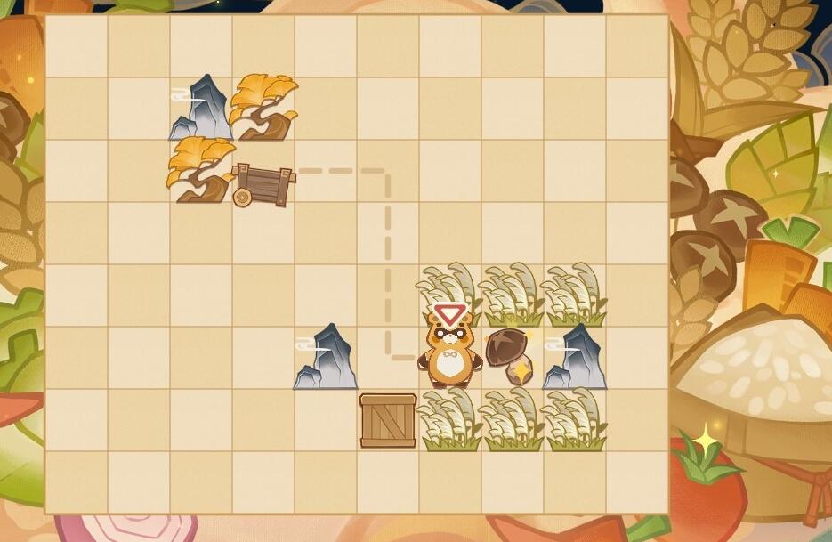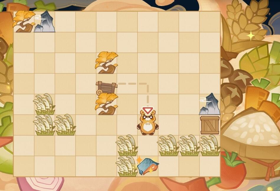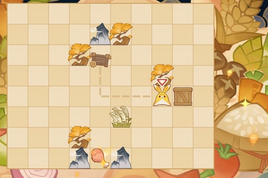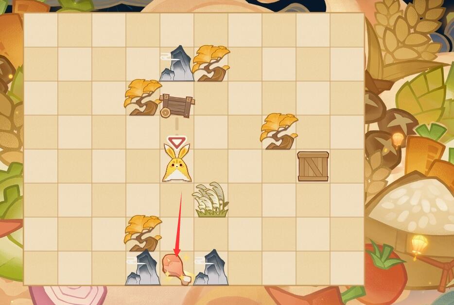 2、操控月桂向左移动三格之后再向下易懂三个格子,就可以拾取鸡腿了。