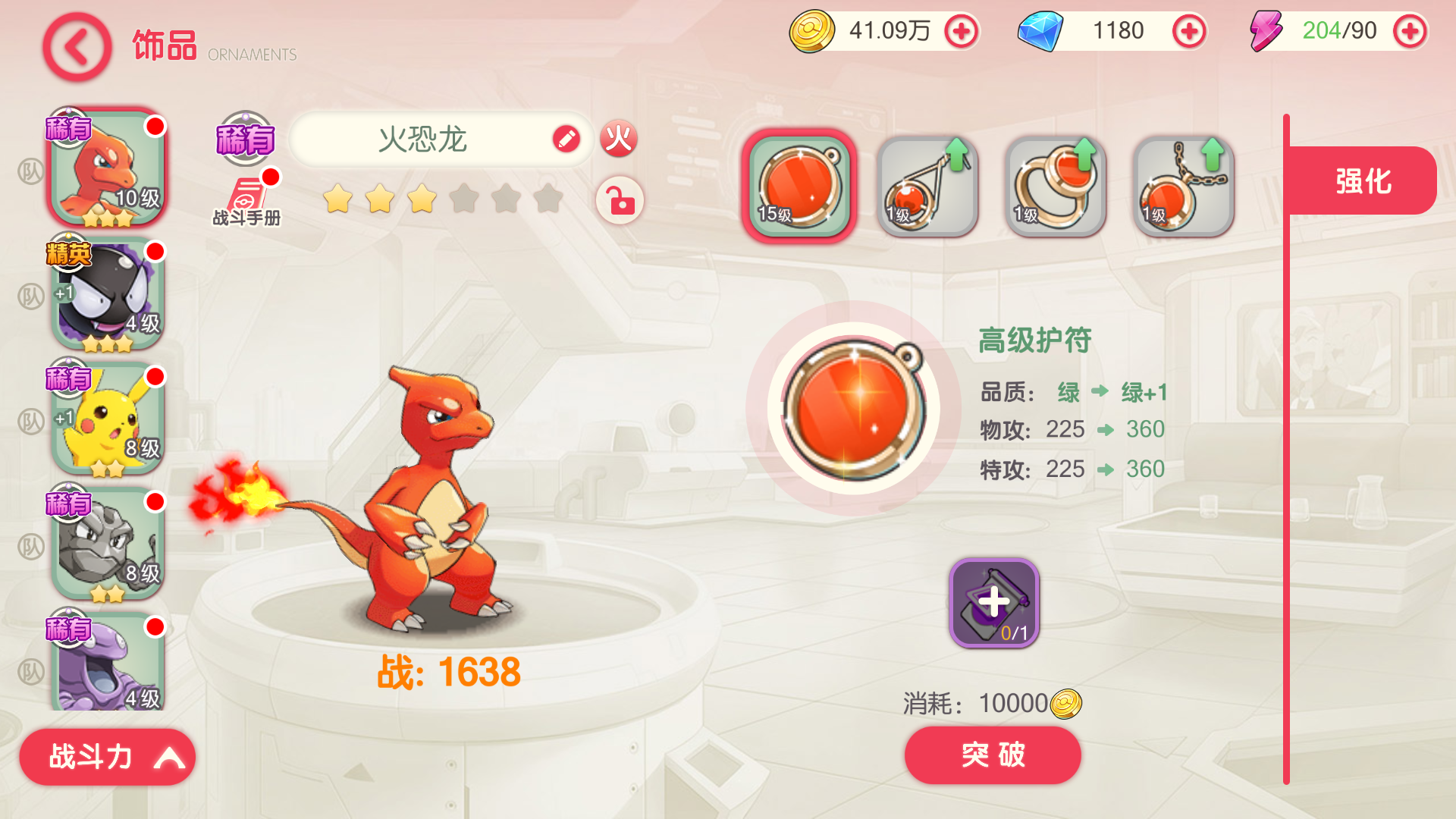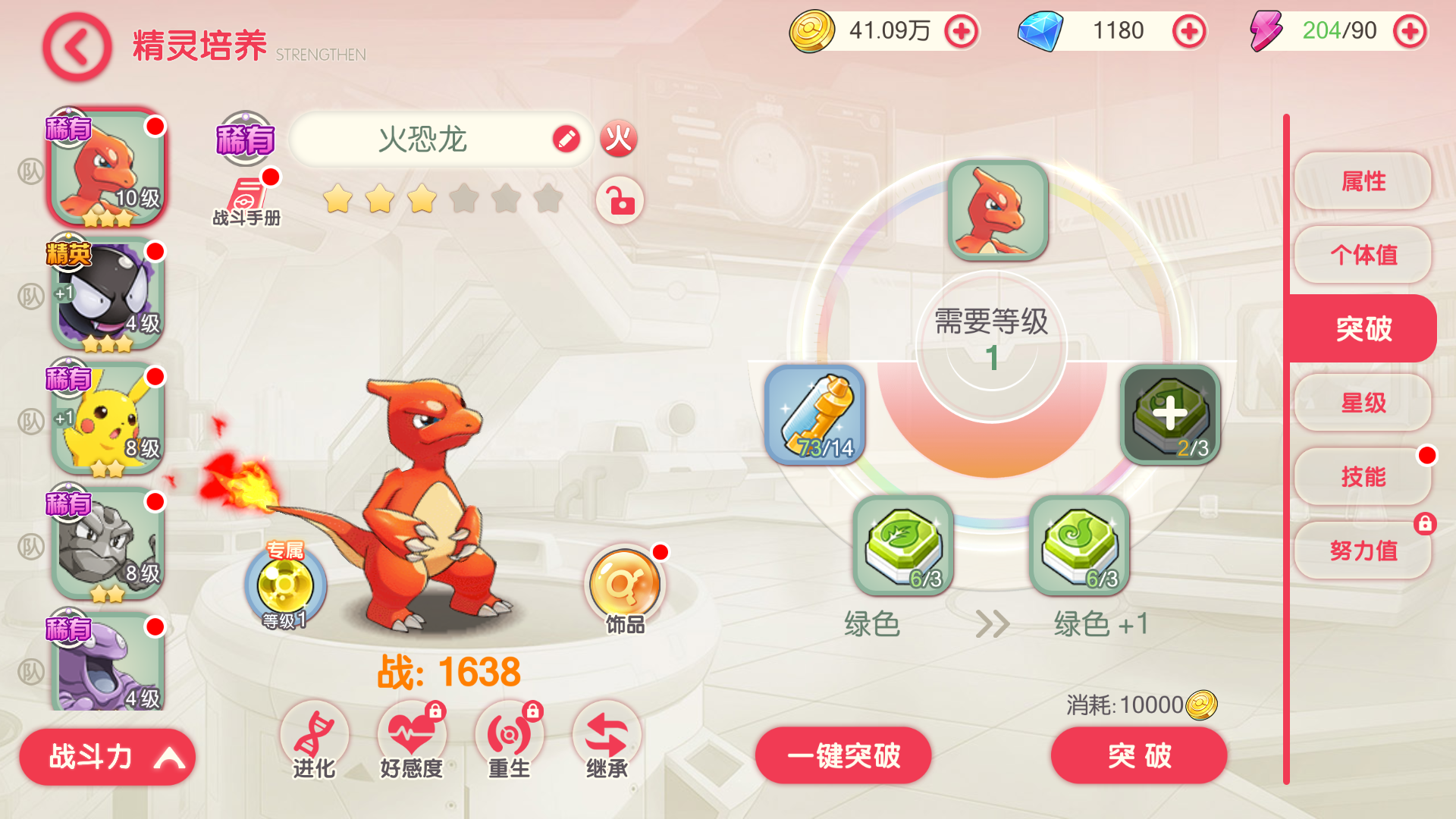 需要品质突破到绿色+或者蓝色+,等级达到要求才能进化,进化需要少量金币,突破道具在各关卡随机获取