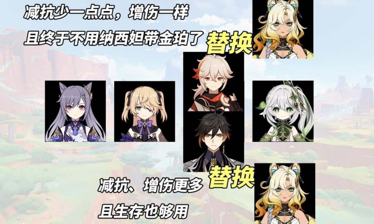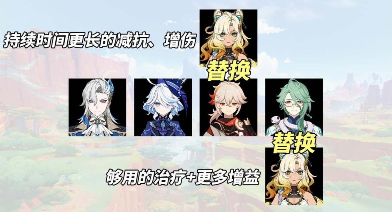 替换万叶可改善队伍减抗覆盖率、转火等等问题。