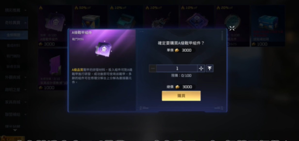 2、获得战甲碎片方法二:在商店花费3000金条直接购买战甲碎片;