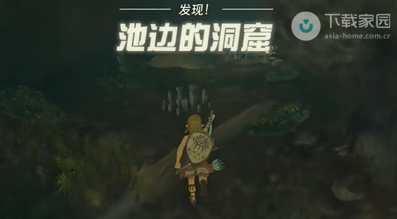 1、首先先到达池边的洞窟,之后从洞口的位置进入;