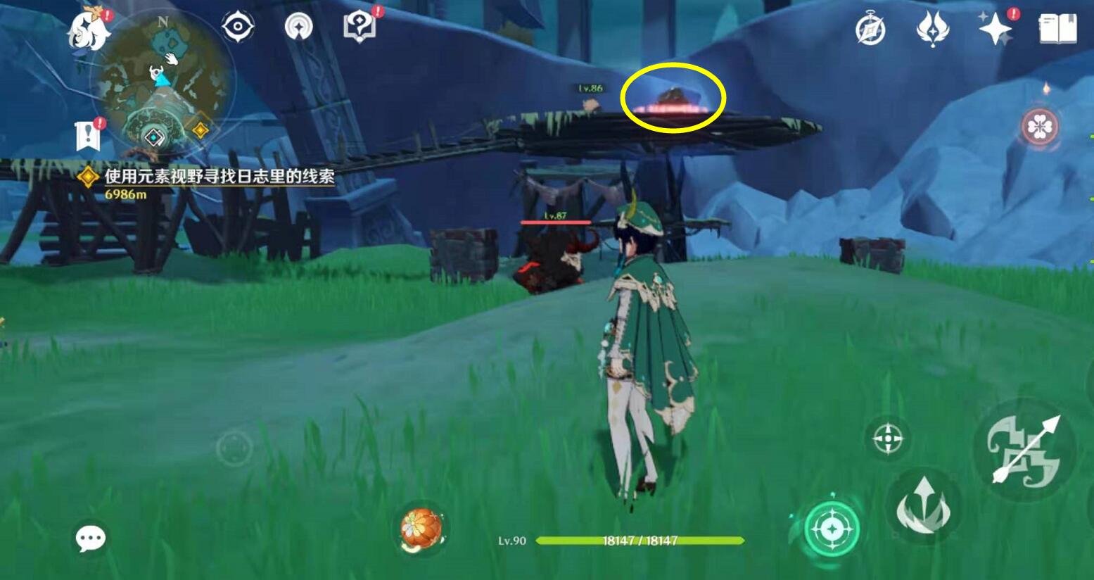 2、在下图位置,有一群丘丘人,击杀丘丘人,开宝箱;