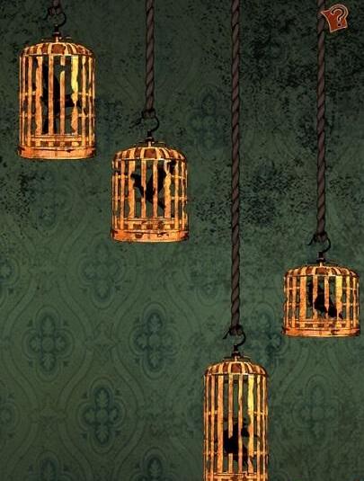 4、我们按照旗袍下的鸟类图案形状与高度,把鸟笼吊到对应位置。