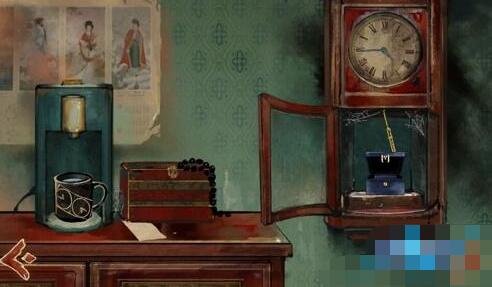 9、钟表摆动声响起,我们按照照片提示4.44调动钟表指针,掉落下一个盒子,里面是钻石。