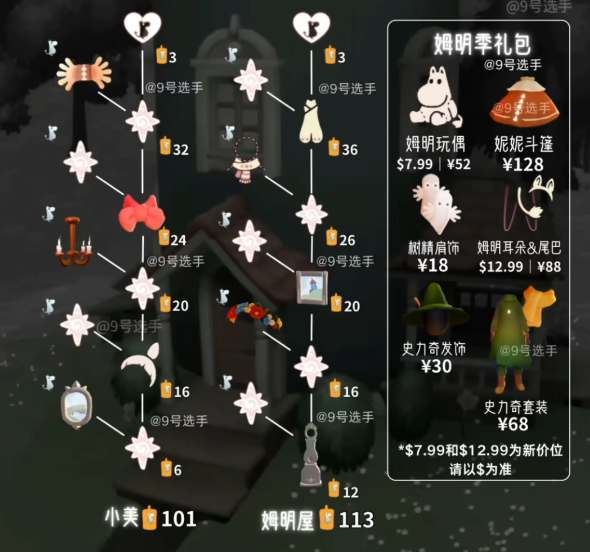 姆明屋:可兑换发饰、围巾、裤子等物品。