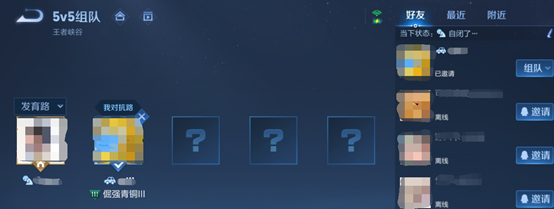 2、在组队页面点击好友,可以查看到对方的状态。