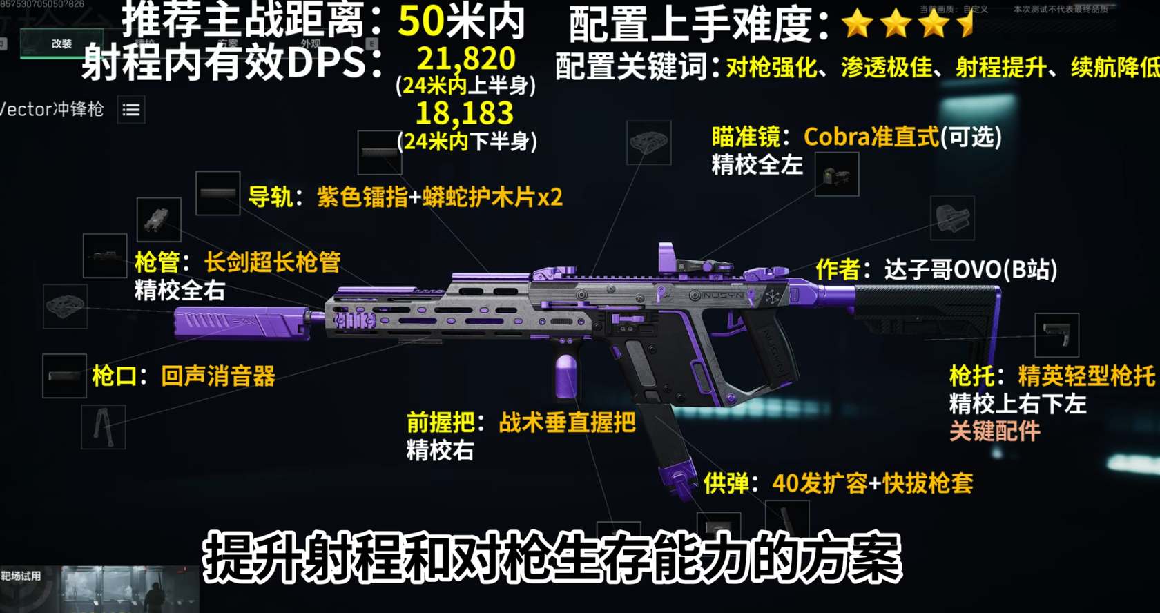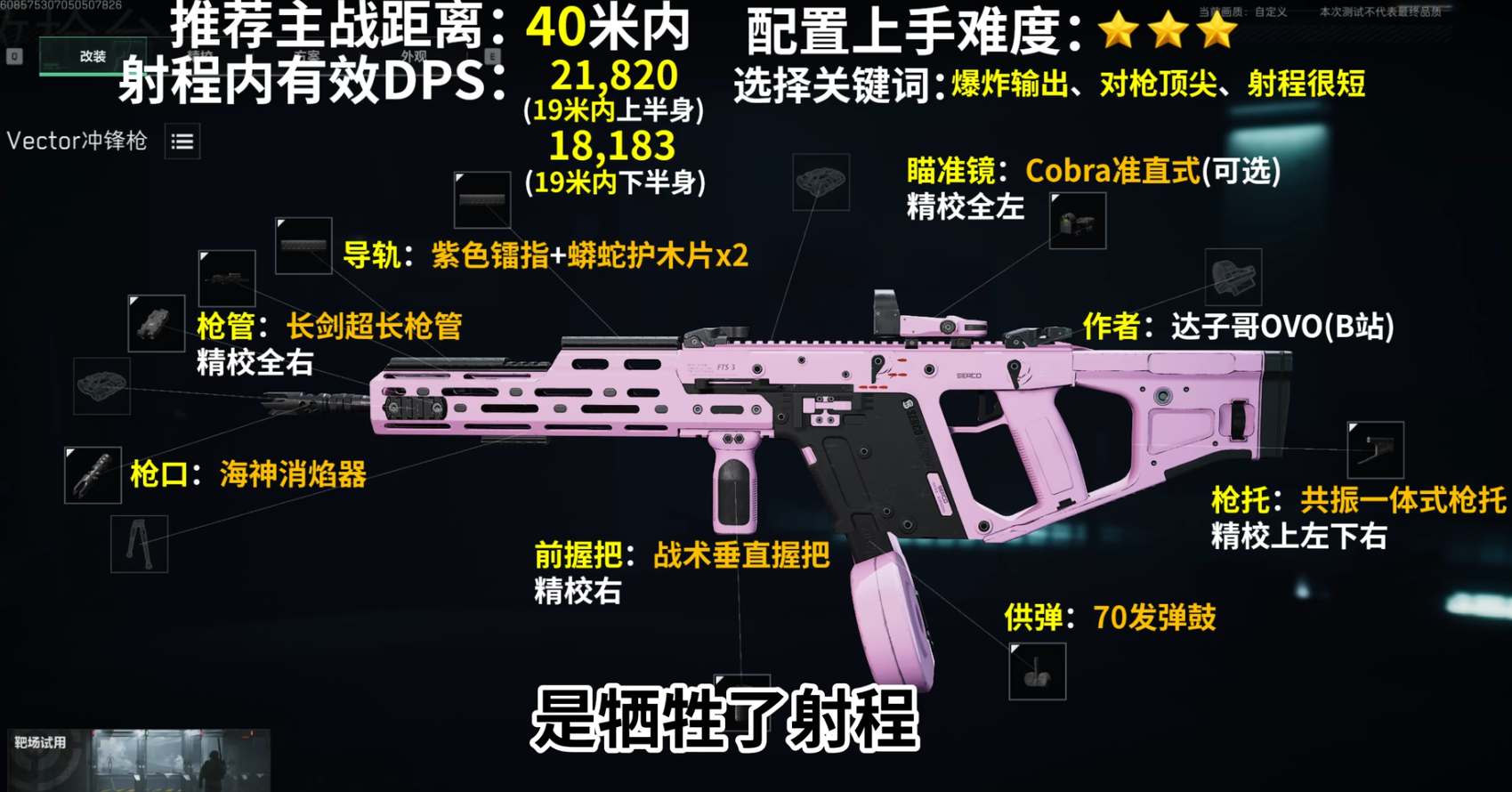 Vector冲锋枪拥有接近1000超高射速,近战中的爆发能力极强。但是在配件的选择上,无法同时兼顾射程、续航和机动性,只能从中选择两个方面进行提升,玩家可以根据地图以及自己的打法定位来决定配置具体思路。