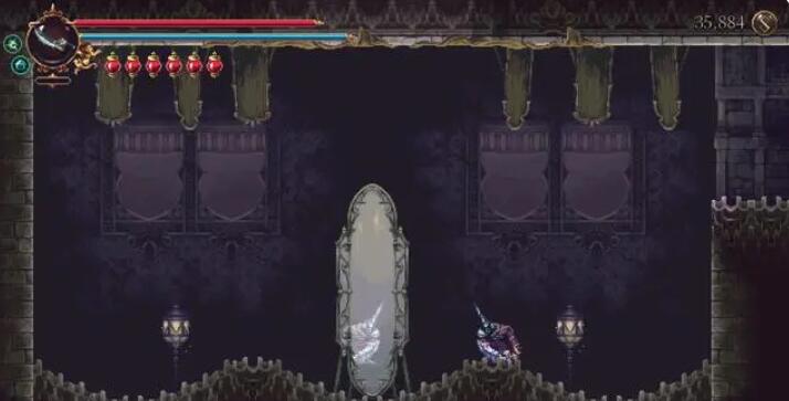 2、来到图示位置,我们来到最下方倒过来的地方的镜子前蹲下,一段时间后就可以完成。