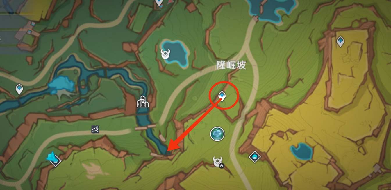 在隆崛坡下方的锚点位置往西南方向走,来到瀑布最上方,进入瀑布里面的岩层,看到一只龙之后再继续往里走。
