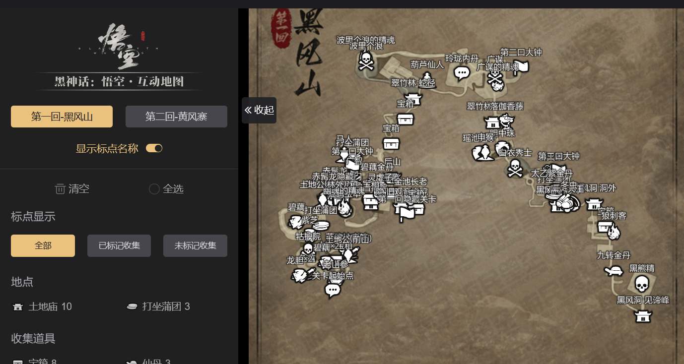 全收集互动地图:https://www.gamersky.com/tools/map/wukong/?gsGameId=1314156&gsAppChannel=diTu
