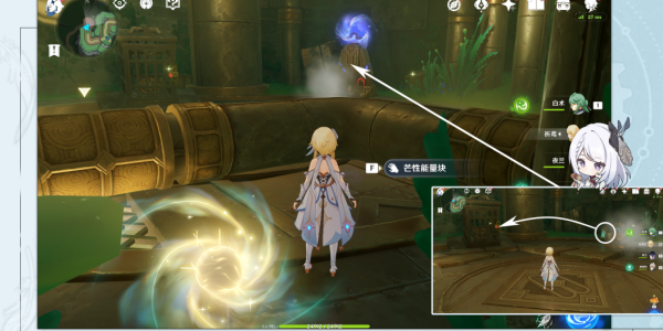 4、之后来到底层,使用芒元素来攻击机关盒来获得手轮;