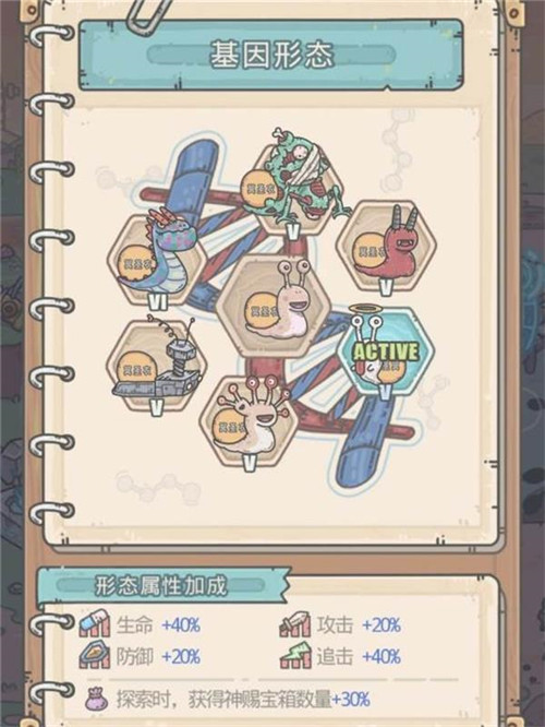 2、镶嵌技能,放置在基因模拟装置,蜗牛增加生命300和30的追击。