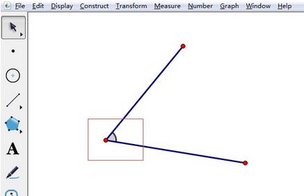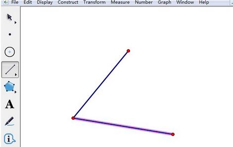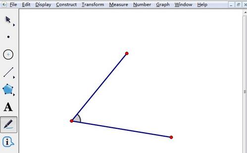 绘制角。打开几何画板,选择左侧侧边栏“线段工具”,在右边的空白区域任意画一个角,如图所示。