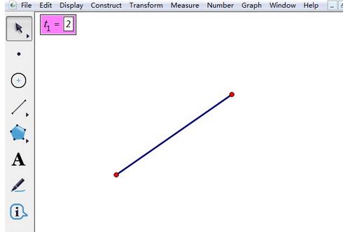 打开几何画板,单击左侧侧边栏的工具箱中的“线段直尺工具”,用鼠标在画板工作区域单击一下确定线段的一个端点,然后拖动鼠标在适当位置再次单击鼠标,从而任意绘制一条线段,如下图所示。