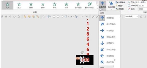 9、设置最左边的数字的“效果选项”为“自底部”,持续时间为3.25秒