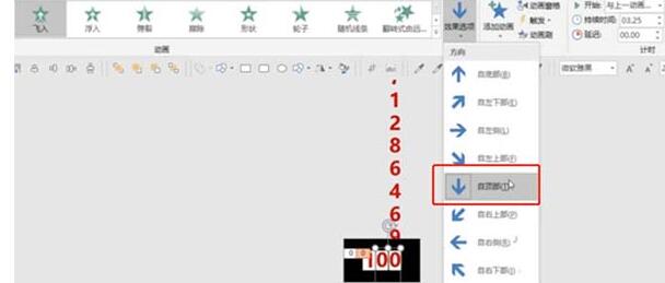 8、同样,设置中间的数字的“效果选项”为“自顶部”,持续时间为3.25秒