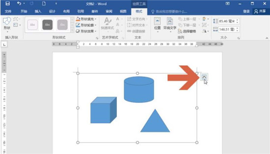 1、如果发现Word2016中的画布不能移动,可以在选中画布后,点击画布右侧图示的按钮。