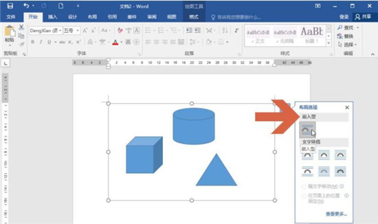 3、这时要想移动画布,可以点击选择除嵌入型之外的其他文字环绕选项。