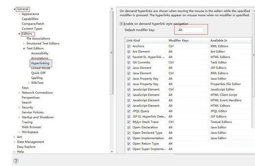 依次展开:General>Editors>Text Editors>Hyperlinking