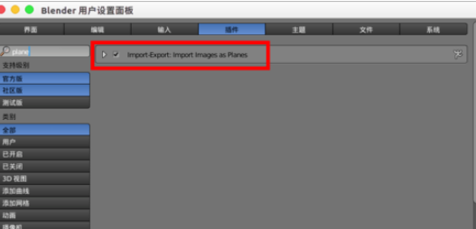 在“插件”中找到“Images as Planes”进行勾选。