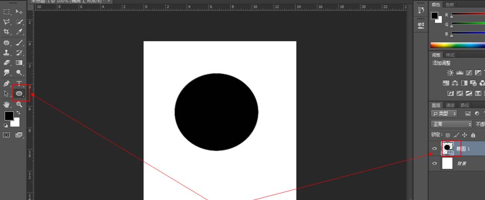 设置好渐变颜色之后,点击“椭圆工具”,在画布中画出一个圆,然后右击圆图层,将其栅格化。