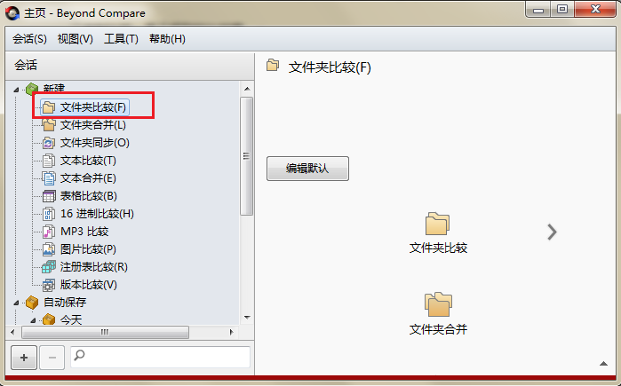 打开Beyond Compare,在主页面左侧新建会话目录中选择“文件夹比较”会话,打开会话操作界面。分别单击会话界面两侧“浏览文件夹”按钮,选择需要比较的文件夹。