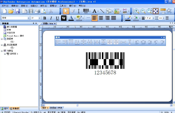 BarTender主工具栏、对象工具栏、查看工具栏、文本工具栏和线条和形状工具栏最初显示在主菜单栏的正下方,排列工具栏沿屏幕右侧显示,而状态栏沿屏幕底部显示;除状态栏外,所有工具栏都能使用以下其中一种技术进行重新定位: