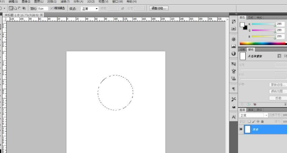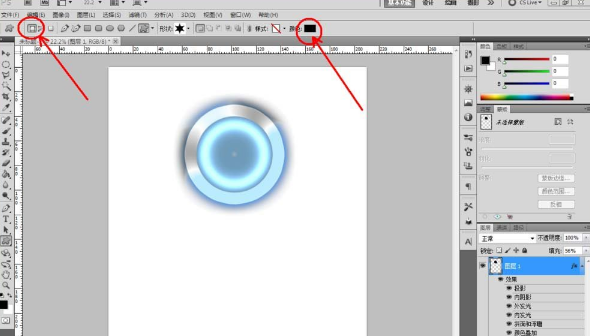 2、点击【椭圆形选框工具】,按图示在作图区域绘制一个规则的圆形选框。完成后,点击右下角的【新建图层】图标,新建一个空白图层。点击【油漆桶工具】将选框区域填充为:黑色(如图所示);