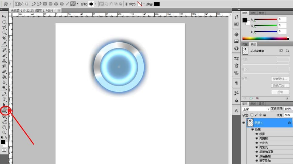3、双击图示圆形图案图层空白区域,弹出【图层样式】设置栏,按图示设置好图层样式的各个参数,完成圆形图案霓虹黑冰效果的制作(如图所示);